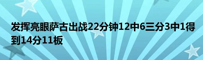全場比賽,薩古替補出戰21分59秒,投籃12中6,三分3中1,罰球2中1,得到14分11籃板2助攻2搶斷,正負值-18。