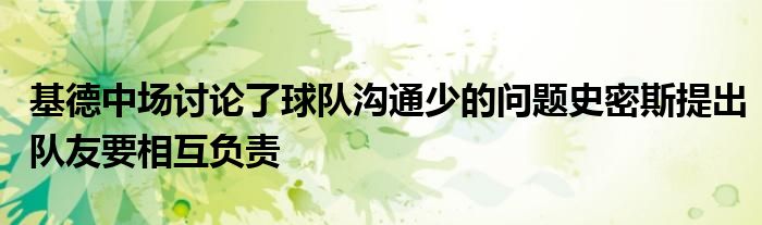 基德還說芬尼-史密斯提出隊友之間要相互負責。