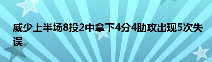 上半場(chǎng)比賽,威少表現(xiàn)不佳,他8投2中拿下4分4助攻,但是還有5次失誤。