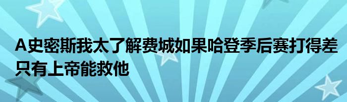 “當這件事發生后,你在賽后還去參加派對,球迷們不會像之前那樣愛你了。我不是指責哈登,不久之前他還說過他愛費城、這里像家一樣,我要告訴他,當他繼續打成那樣還參加派對,球迷們不會愛他了。我只是警告,我太了解費城了。如果他在爵士隊,我根本不會說什么,如果他仍然不相信我,可以去問艾弗森,艾弗森會說A-史密斯是對的。我太了解費城了,如果哈登季后賽再打成那樣,那就只有上帝可以幫助他了。”
