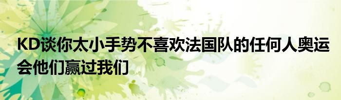 杜蘭特說道:“我不會說法語,我用mini稱呼他,對那支法國隊就是這樣,他們在奧運會擊敗過我們。我不喜歡他們中的任何一個人,我尊重他們,如果在場下遇到我會給他們大大的擁抱,但是那就是我不喜歡的球隊以及球員。”