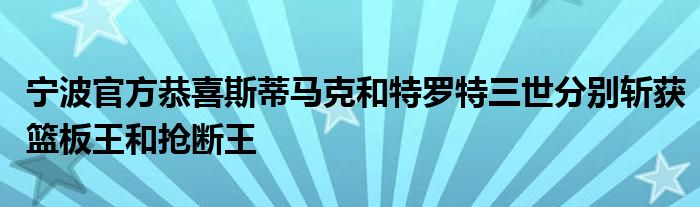 3月23日訊 今日,寧波男籃官方微博祝賀隊內(nèi)球員弗拉迪米爾-斯蒂馬克和克拉倫斯-特羅特三世分別當選本賽季籃板王和搶斷王。