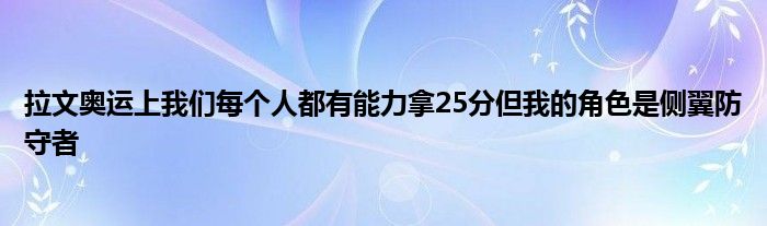 “我們每個人都有能力每場拿25分,但并不是每個人都有機會做到這一點。因此,我將所有的精力放在防守上,希望成為一個側翼防守者。”