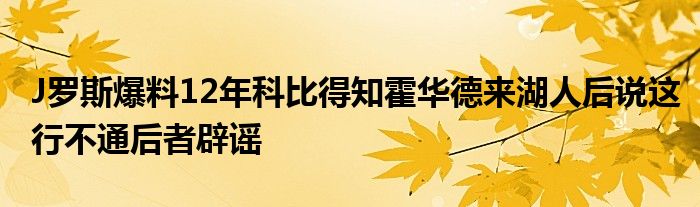他說:“在科比聽說霍華德將被交易到湖人的那天,我正在科比的訓(xùn)練營里。所以科比接到那個(gè)電話時(shí),我在他身邊。我聽到了一些對(duì)話,霍華德問他關(guān)于洛杉磯和一些場外的事情??票葤鞌嚯娫捴笳f,‘這這行不通’?!?/p>
