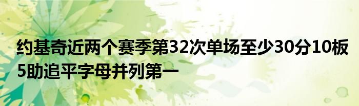 在近兩個賽季中,約基奇在32場比賽中得到至少30分10籃板5助攻,追平字母哥并列第一,具體如下: