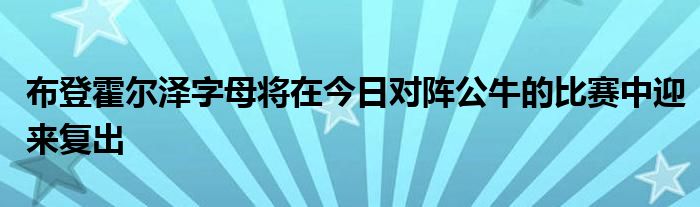 據雄鹿主教練布登霍爾澤賽前透露,球隊核心字母哥將在本場比賽迎來復出,此前他因膝蓋傷勢缺席了球隊上一場對陣森林狼的比賽。