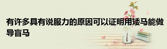 有許多具有說服力的原因可以證明用矮馬能做導盲馬。這里所說的矮馬,是一種“迷你馬”,比實際上我們常說的矮馬還要低矮、溫馴。