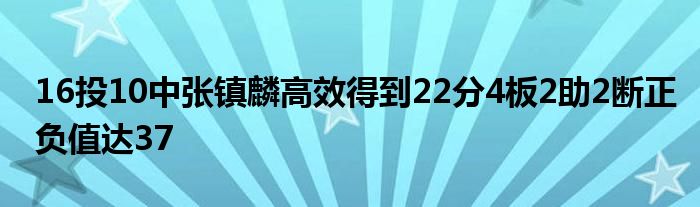 本場比賽,張鎮麟手感火熱,全場他出戰33分鐘,16投10中得到了22分4板2助2搶斷,他的正負值為+37。