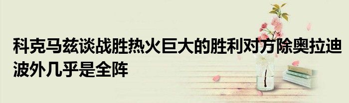 談到戰(zhàn)勝熱火時,科克馬茲說道:“他們的人員齊整,他們幾乎是完整的陣容,除了奧拉迪波之外。我們知道他們打球的方式,我認(rèn)為今天是一場巨大的勝利。”