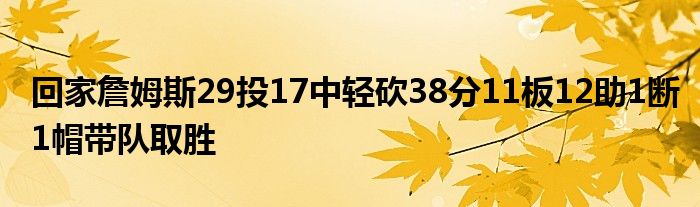 他全場出戰40分半,29投17中,沒有命中三分球,4罰4中,拿下了38分11板12助1斷1帽的數據帶隊取勝。