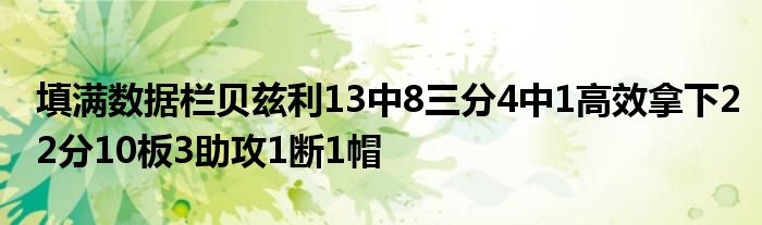 此役,雷霆前鋒貝茲利發揮亮眼,他出戰36分04秒,13投8中,三分4中1,罰球7中5得到22分10籃板3助攻1搶斷1蓋帽,僅1次失誤。