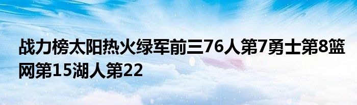 3月22日訊今日,NBA官方公布了最新一期的球隊戰力榜,太陽、熱火、綠軍、灰熊仍穩居前四,雄鹿殺入前五,獨行俠掉至第六,76人仍居第七,勇士掉至第八,籃網排第十五名,湖人掉至第二十二名。