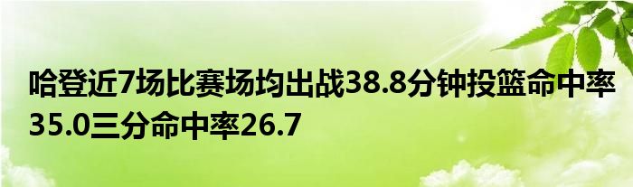 最近7場比賽,哈登場均出戰38.8分鐘,場均19.9分6.7籃板9.6助攻,投籃命中率僅35.0%,三分命中率更是只有26.7%,還有場均3.7次的失誤。