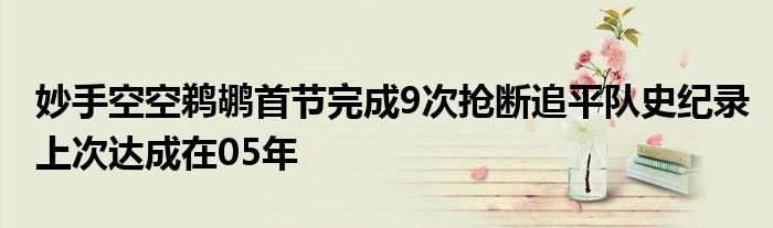 鵜鶘在第一節送出了9次搶斷,據鵜鶘隨隊記者Andrew Lopez統計,單節9搶斷追平了鵜鶘隊史紀錄。此前鵜鶘曾兩次在單節比賽中達成該數據,分別是在04年3月2日對陣奇才和05年4月6日對陣老鷹。