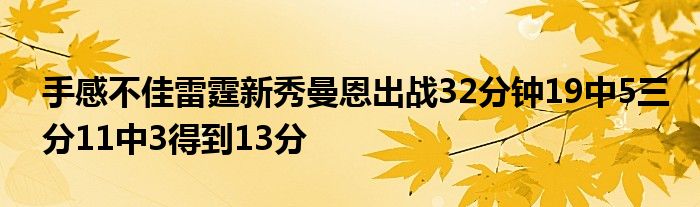 全場比賽,曼恩出戰(zhàn)31分34秒,投籃19中5,三分11中3,得到13分5籃板2搶斷,正負值-18。