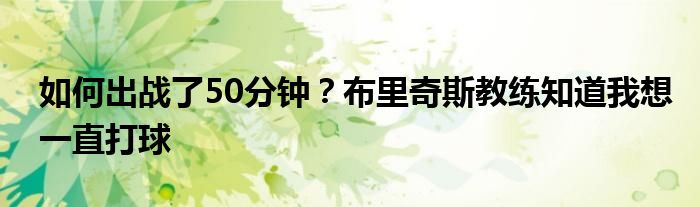 當被問及他是如何在50分鐘里也能持續(xù)發(fā)揮出色時,米卡爾-布里奇斯說道:“我不知道。教練只是讓我待在場上,他知道我想出場,我確實只想在球場上。”