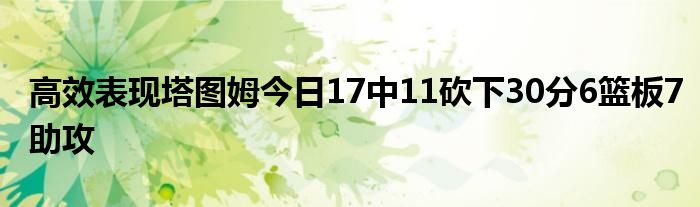 本場比賽,凱爾特人前鋒塔圖姆出戰33分鐘,17投11中,三分10投6中,罰球2罰2中,全場得到30分6籃板7助攻1搶斷。
