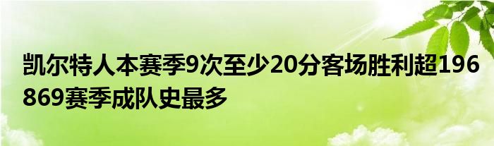 據統計,這是凱爾特人本賽季第9次贏下至少20分的客場勝利,超越1968-69賽季成為隊史最多一季。