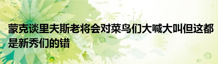 蒙克說:“新秀會經歷許多起起伏伏,新秀墻。老將們會對他們大喊大叫,但這都是新秀們的錯。新秀們做的一切都是他們的錯,因為老將們知道一切,而他們一無所知。”