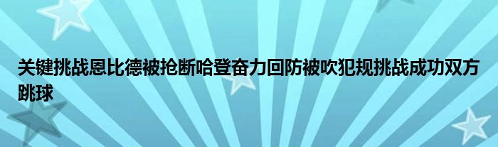 76人失誤被猛龍打出反擊,哈登奮力回防,裁判哨響吹罰哈登打手犯規(guī),隨后里弗斯使用教練挑戰(zhàn),最后挑戰(zhàn)成功改判雙方跳球。