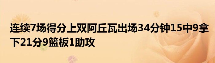 值得一提的是,阿丘瓦已連續7場比賽得分上雙。