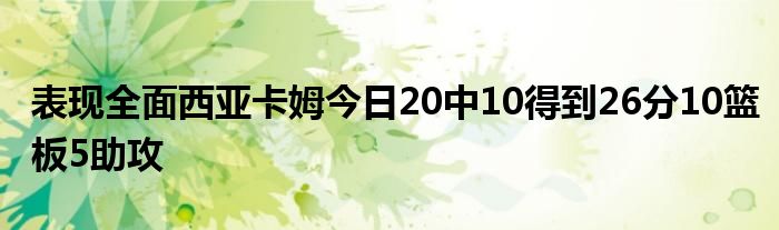 本場比賽,猛龍球員西亞卡姆出戰36分鐘,20投10中,三分3投1中,罰球6罰5中,全場得到26分10籃板5助攻。