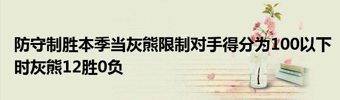 據(jù)統(tǒng)計(jì),本賽季當(dāng)灰熊在比賽中限制對手的全場得分為100分以下時(shí),灰熊取得了12勝0負(fù)的戰(zhàn)績。