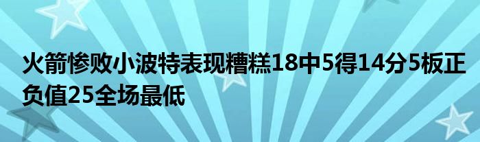 此役,火箭后衛小凱文-波特表現糟糕,全場上陣27分鐘18投僅5中,三分7中2、罰球4中2,得到14分5籃板3助攻1搶斷,正負值為-25全場最低。