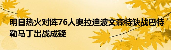 其中,奧拉迪波和加布-文森特將缺戰(zhàn),巴特勒和科雷布-馬丁將出戰(zhàn)成疑。