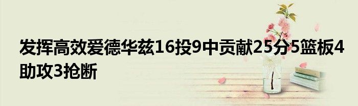 此役,愛德華茲出場33分鐘,投籃16中9,三分10中5,罰球2中2,貢獻25分5籃板4助攻3搶斷,正負值為+17。