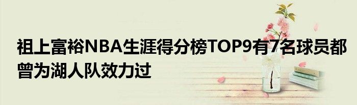 數據網站StatMuse列出了NBA歷史得分榜TOP9。其中,有7名球員都曾經為湖人隊效力,具體榜單如下: