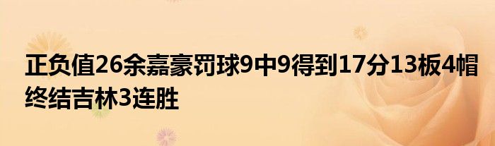 浙江隊(duì)中鋒余嘉豪今日打出高效表現(xiàn),全場(chǎng)出戰(zhàn)33分18秒,投籃8中4,罰球9中9,得到17分13籃板的兩雙,此外還有4次封蓋入賬,且沒(méi)有失誤,正負(fù)值+26全場(chǎng)最高!