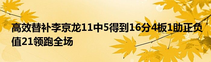 本場比賽,廣州隊球員李京龍替補出場27分鐘,11投5中,三分10中4、罰球3中2,得到16分4籃板1助攻,同時還有3次失誤,正負值高達+21,領跑全場。
