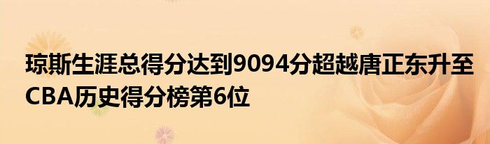 此役過后,瓊斯的CBA生涯總得分達(dá)到9094分,超越唐正東升至CBA歷史得分榜第6位,在前面一位的是王治郅。