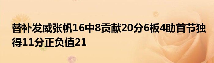全場比賽,張帆替補(bǔ)出戰(zhàn)28分17秒,投籃16中8,三分11中4,得到20分6籃板4助攻,正負(fù)值高達(dá)+21。