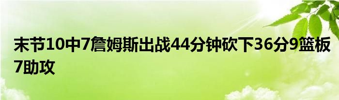 此役,詹姆斯表現出色,他出戰44分鐘,26投15中,其中三分球7投2中,另外罰球7罰4中,砍下36分9籃板7助攻2蓋帽,其中末節10投7中砍下16分4籃板,特別是最后時刻連得8分,為球隊保留了比賽的懸念,也為最后拖入加時并擊敗對手打下了基礎。