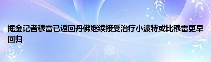 據另一名掘金記者Joel Rush報道,小波特可能會比穆雷更早復出。