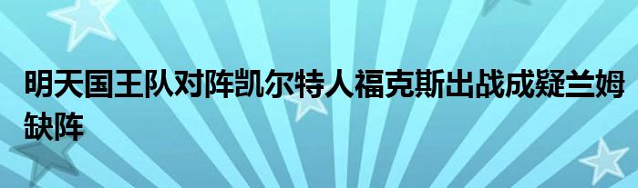 今天,國王隊官方宣布,福克斯將在明天的比賽中出戰成疑。