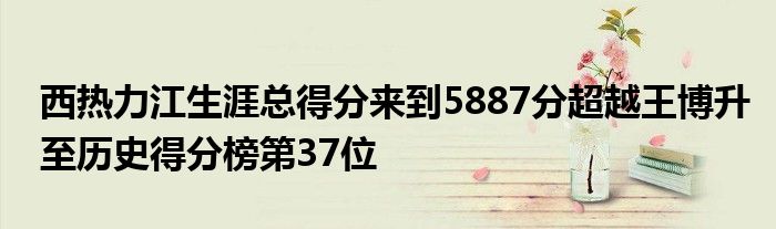 此役過后,西熱力江的生涯總得分來到5887分,超越廣廈隊現任主教練王博升至CBA歷史得分榜第37位。