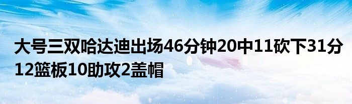 本場比賽,四川外援哈達(dá)迪發(fā)揮出色,他出場46分鐘,投籃20中11,罰球11中9,砍下31分12籃板10助攻2蓋帽,出現(xiàn)4次失誤。
