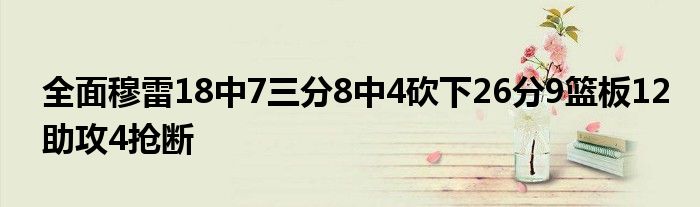 本場比賽,馬刺球星穆雷發揮出色,他出場36分鐘,投籃18中7,三分8中4,罰球8中8,砍下26分9籃板12助攻4搶斷,出現3次失誤,正負值+19全場最高。