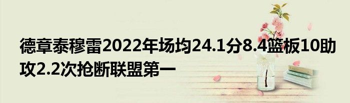 據統計,自從進入2022年以來,馬刺隊球員德章泰-穆雷場均能得到24.1分8.4籃板10助攻2.2搶斷。