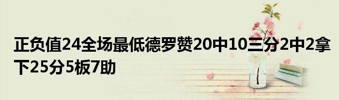 本場比賽,公牛球星德羅贊出場35分鐘,投籃20中10,三分2中2,罰球4中3,拿下25分5籃板7助攻,出現4次失誤,不過正負值-24為全場最低。