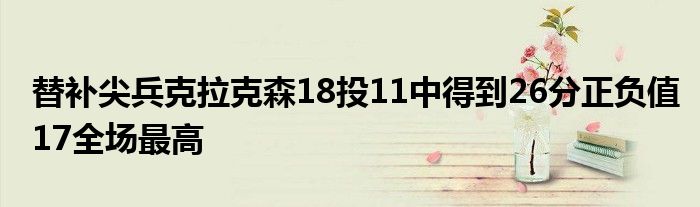 此役,克拉克森替補出場34分鐘41秒,投籃18中11,三分5中1,罰球4中3,貢獻26分5籃板1助攻2搶斷。