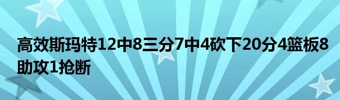 本場比賽,凱爾特人后衛(wèi)斯瑪特發(fā)揮出色,他出戰(zhàn)33分鐘,投籃12中8,三分7中4,砍下20分4籃板8助攻1搶斷。