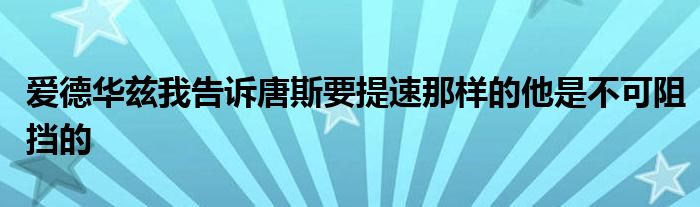 愛德華茲接著談到了他與唐斯的一次對話:“我問他:你喜歡成功嗎?他以為我在開玩笑。當我嚴肅再次問他時,我告訴他,你每次提速你就能得40分。當他跑得快的時候,他就是不可阻擋的。”