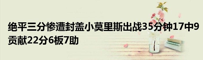 全場比賽,小莫里斯出戰34分50秒,投籃17中9,三分7中2,罰球2中2,得到22分6籃板7助攻0失誤,正負值+5。