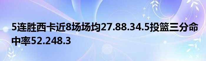 數據顯示西亞卡姆過去8場比賽場均27.8分8.3籃板4.5助攻,投籃命中率52.2%,三分命中率48.3%,帶領猛龍取得5勝3負。