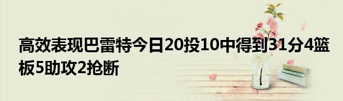本場比賽,尼克斯球員巴雷特出戰40分鐘,20投10中,三分11投5中,罰球7罰6中,全場得到31分4籃板5助攻2搶斷1蓋帽。