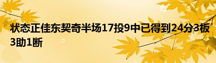 截至半場,獨行俠球星東契奇出戰18分鐘,17投9中,罰球2中2,已得到24分3籃板3助攻1搶斷。